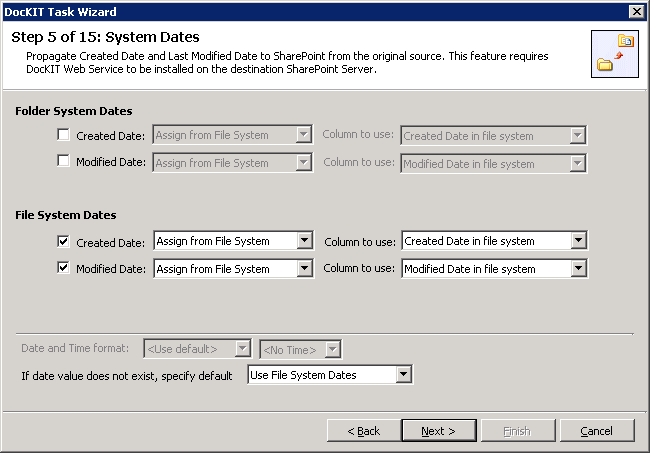 - Click Next twice to go to System Dates step. This step will assist you to retain the original date field (Created Date, Modified Date) values as in source file system to destination SharePoint.